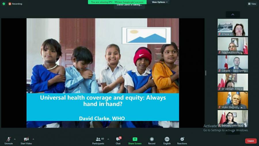 สมาชิกสภาผู้แทนราษฎรเข้าร่วมสัมมนาออนไลน์ของสหภาพรัฐสภา หัวข้อ หลักประกันสุขภาพถ้วนหน้าและความเท่าเทียม"