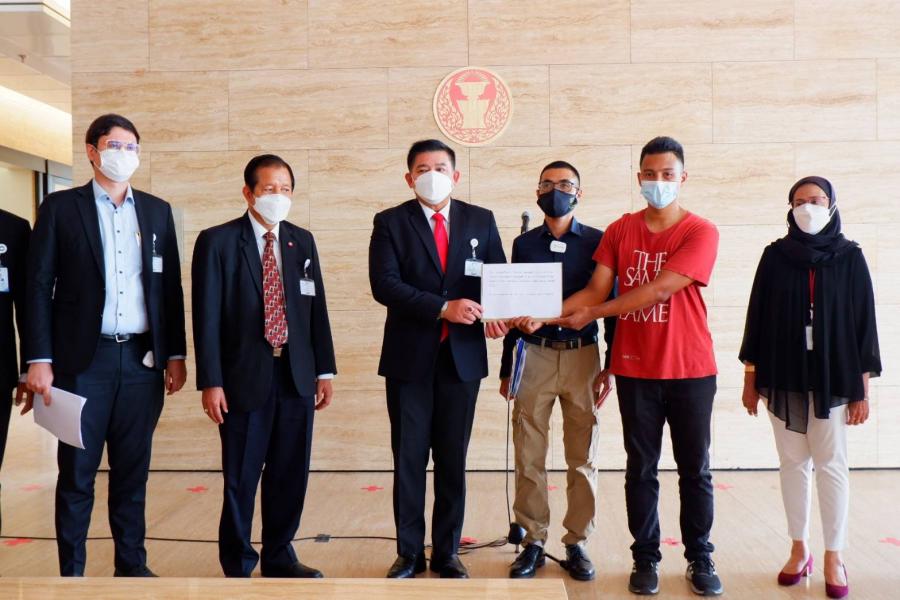 ประธานคณะ กมธ.การกฎหมาย การยุติธรรม และสิทธิมนุษยชน และคณะ รับยื่นหนังสือจาก ผู้อำนวยการกองงานมวลชนอาสา We Volunteer (WeVo) เรื่อง ขอความเป็นธรรมให้มีการตรวจสอบพฤติกรรมการทำหน้าที่ของเจ้าพนักงานตำรวจชุดจับกุมผู้ชุมนุม เมื่อวันที่ 24 ต.ค. 64 บริเวณด้านหน้าสถานีตำรวจนครบาลดินแดง