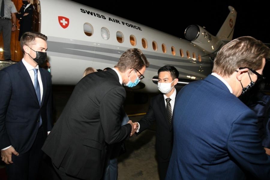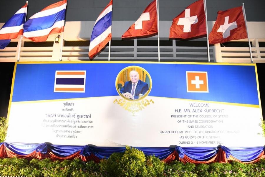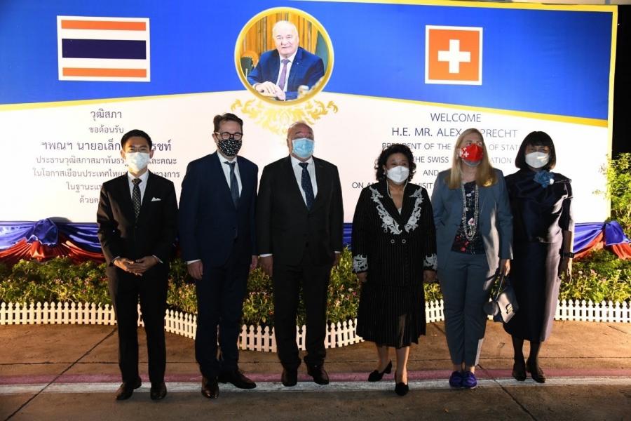 นายอิสระ เสรีวัฒนวุฒิ สมาชิกสภาผู้แทนราษฎร ในฐานะผู้แทนประธานรัฐสภา พร้อมด้วยนางพิกุลแก้ว ไกรฤกษ์ สมาชิกวุฒิสภา ประธานคณะกรรมาธิการการต่างประเทศ วุฒิสภา ให้การต้อนรับ นายอเล็กซ์ คูเพรซท์ (H.E.Mr.Alex Kuprecht) ประธานวุฒิสภาสมาพันธรัฐสวิส และคณะ ในโอกาสเดินทางเยือนประเทศไทยอย่างเป็นทางการ ระหว่างวันที่ 3 - 6 พ.ย. 64 ณ ห้องรับรองพิเศษ กองบิน 6 ท่าอากาศยานทหาร 2