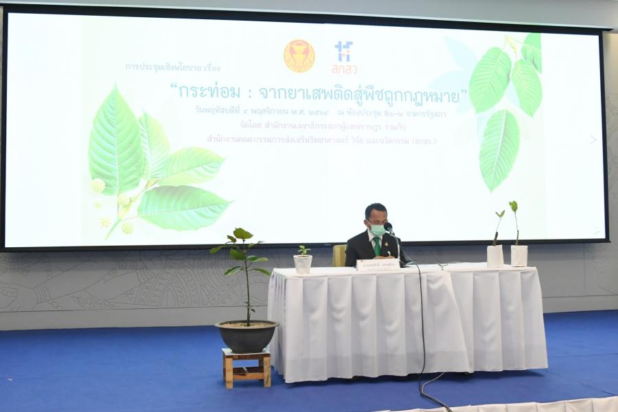 โดยการประชุมดังกล่าว สำนักงานเลขาธิการสภาผู้แทนราษฎร ร่วมกับ สำนักงานคณะกรรมการส่งเสริมวิทยาศาสตร์ วิจัยและนวัตกรรม จัดขึ้นโดยมีวัตถุประสงค์เพื่อแลกเปลี่ยนความรู้ด้านการวิจัย ข้อมูล ความคิดเห็นเกี่ยวกับพืชกระท่อมและร่าง พ.ร.บ.พืชกระท่อม พ.ศ.... ตลอดจนทิศทางการขับเคลื่อนพืชกระท่อมให้เป็นพืชเศรษฐกิจของประเทศภายหลังการประกาศใช้กฎหมาย