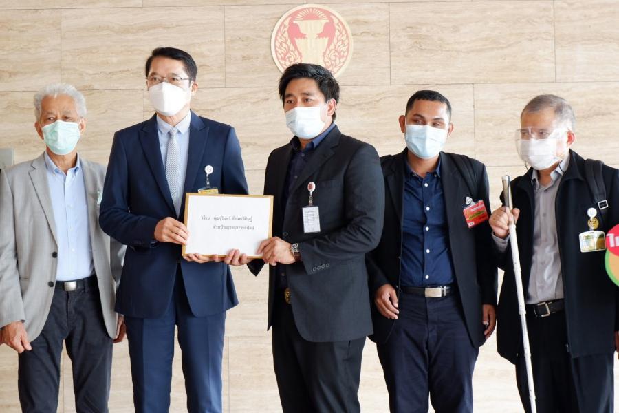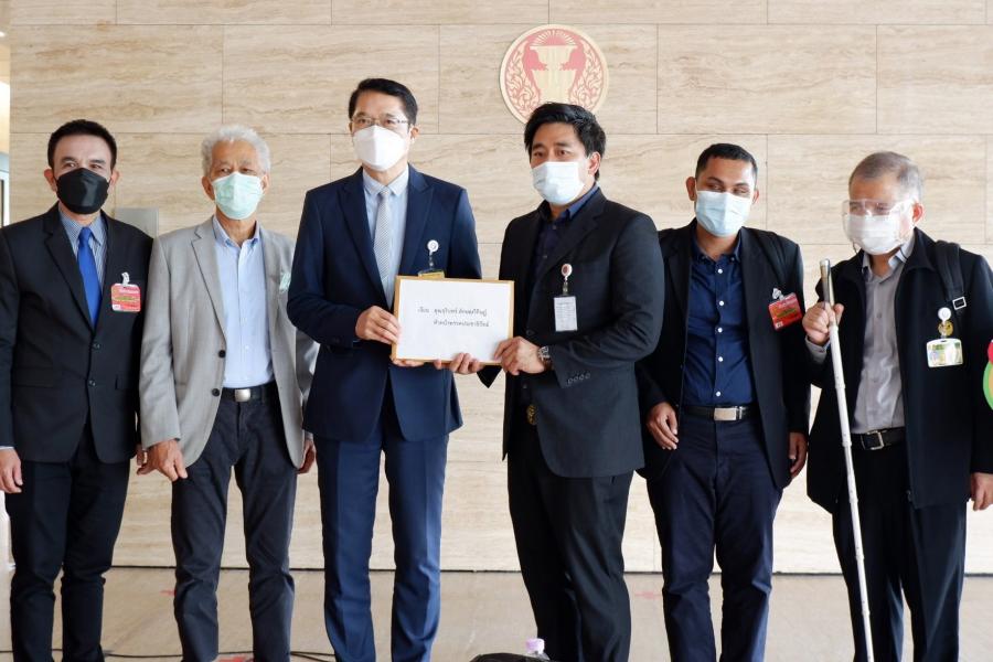 นายองอาจ คล้ามไพบูลย์ ส.ส.พรรคประชาธิปัตย์ รับยื่นหนังสือจาก นายแทนคุณ จิตต์อิสระ ประธานคณะกรรมการส่งเสริมสิทธิมนุษยชนและความเท่าเทียมระหว่างเพศ พรรคประชาธิปัตย์ พร้อมด้วยตัวแทนเครือข่ายภาคประชาชน 10 เครือข่าย