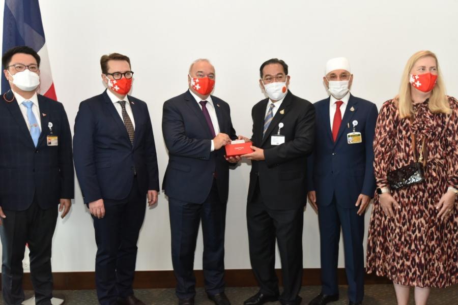 ประธานกลุ่มมิตรภาพสมาชิกรัฐสภาไทย-สวิตเซอร์แลนด์ ให้การรับรอง ประธานวุฒิสภาสมาพันธรัฐสวิส และคณะ ในโอกาสเดินทางเยือนประเทศไทยอย่างเป็นทางการ ในฐานะแขกของวุฒิสภา