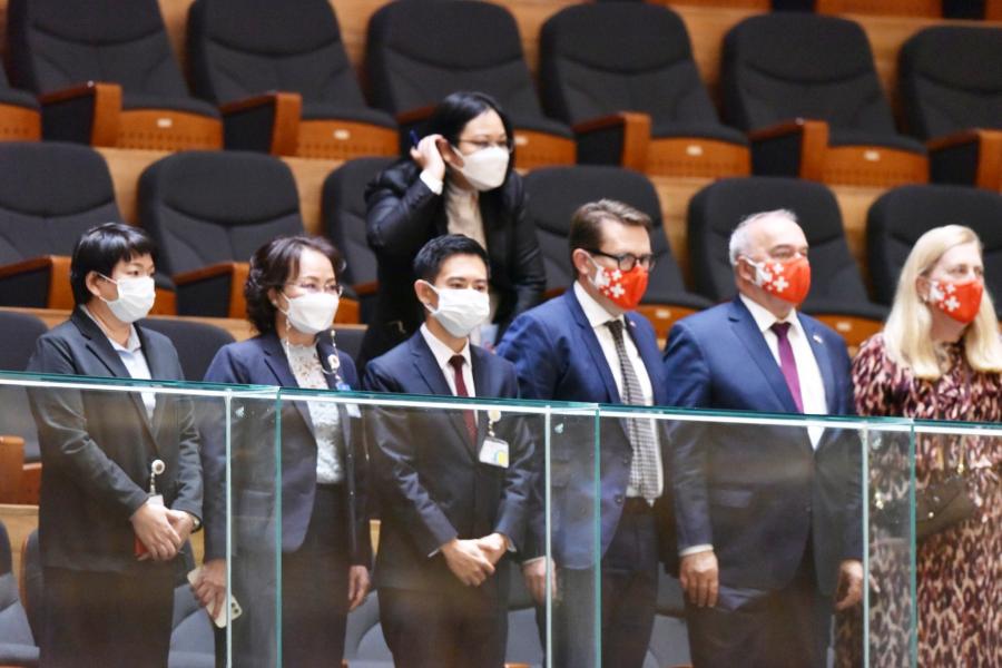 วันศุกร์ที่ 5 พฤศจิกายน 2564 เวลา 14.00 นาฬิกา ณ ห้องประชุมสภาผู้แทนราษฎร ชั้น 2 อาคารรัฐสภา นายอิสระ เสรีวัฒนวุฒิ สมาชิกสภาผู้แทนราษฎร นำนายอเล็กซ์ คูเพรซท์ (H.E.Mr.Alex Kuprecht) ประธานวุฒิสภาสมาพันธรัฐสวิส และคณะ เยี่ยมชมการประชุมสภาผู้แทนราษฎร (สมัยสามัญประจำปีครั้งที่สอง) เป็นพิเศษ โดยมี นางพรพิศ เพชรเจริญ เลขาธิการสภาผู้แทนราษฎร และน.ส.สตีจิตร ไตรพิบูลย์สุข รองเลขาธิการสภาผู้แทนราษฎร ร่วมนำชม