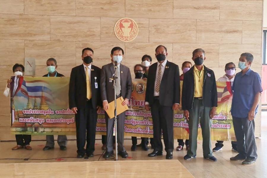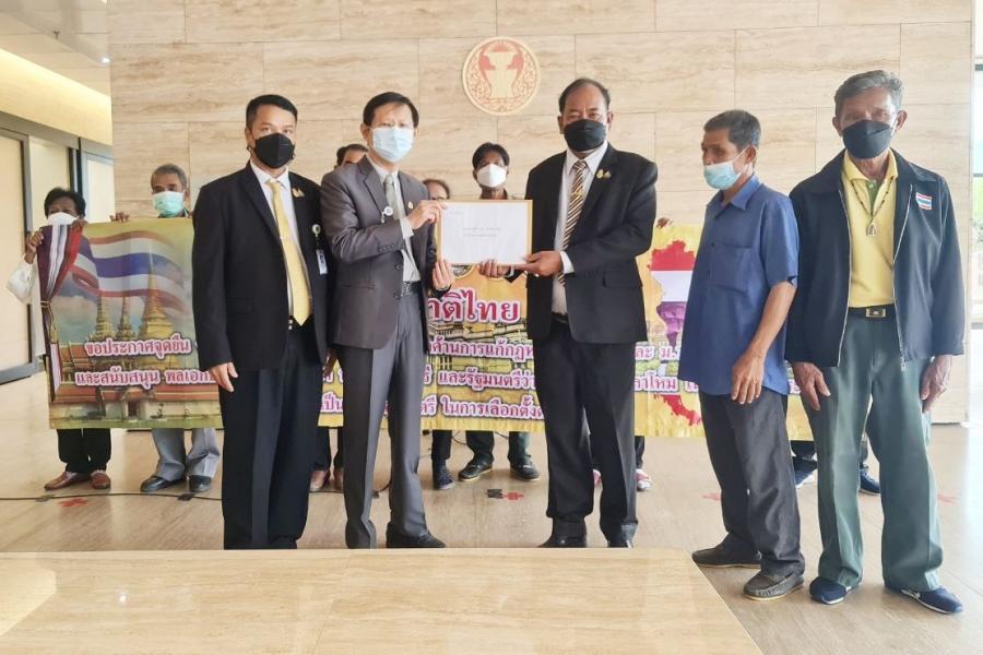 นายระวี มาศฉมาดล สมาชิกสภาผู้แทนราษฎร พรรคพลังธรรมใหม่ รับยื่นหนังสือจาก นายกฤษฎีกา มณีมัยผู้ประสานงานผู้ร่วมพัฒนาชาติไทย 4 ภาค และคณะ