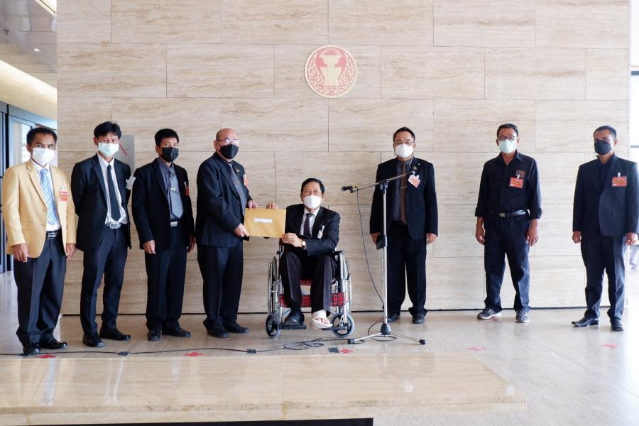 นายอุบลศักดิ์ บัวหลวงงาม ส.ส. พรรคเพื่อไทย รับยื่นหนังสือจาก นายอุดม โพธิ์ชัย ประธานชมรมครูประถมศึกษา จ.ศรีสะเกษ และคณะ
