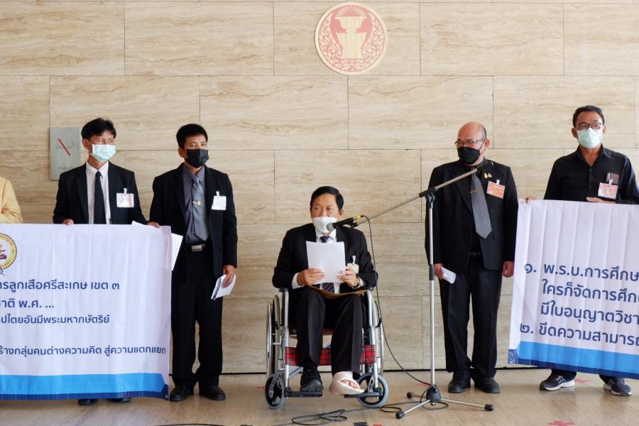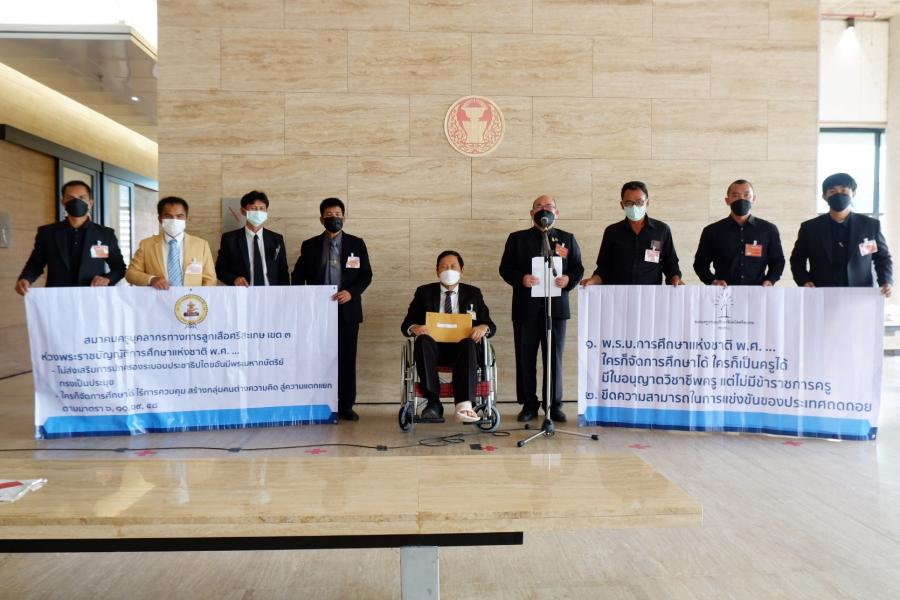 วันอังคารที่ 9 พฤศจิกายน 2564 เวลา 09.30 นาฬิกา ณ จุดรับยื่นหนังสือ ชั้น 1 (โซนกลาง) อาคารรัฐสภา นายอุบลศักดิ์ บัวหลวงงาม ส.ส. พรรคเพื่อไทย รับยื่นหนังสือจาก นายอุดม โพธิ์ชัย ประธานชมรมครูประถมศึกษา จ.ศรีสะเกษ และคณะ เพื่อแสดงความห่วงใยต่อร่าง พ.ร.บ.การศึกษาแห่งชาติ พ.ศ. .... ที่ไม่มีมาตราใดส่งเสริมการปกครองระบอบประชาธิปไตยอันมีพระมหากษัตริย์ทรงเป็นประมุข และโครงสร้างการบริหารจัดการการศึกษาที่มีการรวบอำนาจสู่ส่วนบน โดยสถานศึกษาทุกแห่ง มีการบริหารสถานศึกษาและจัดกิจกรรมการเรียนการสอนเพื่อหล่อหลอมผู้เรียนให้ซึมซับจากต้นสังกัด ซึ่งจะส่งผลให้ขีดความสามารถในการแข่งขันของประเทศลดลง จึงขอให้ ส.ส.ของพรรคพิจารณาปรับแก้ไขร่าง พ.ร.บ.ดังกล่าวอย่างมีส่วนร่วม