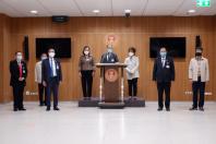 ประธานคณะ กมธ. การศาสนา ศิลปะและวัฒนธรรม พร้อมด้วย รองประธานคณะ กมธ. คนที่สาม และคณะ แถลงข่าวการพิจารณาของคณะ กมธ.