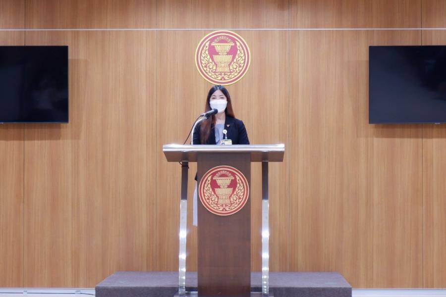 น.ส.สุทธวรรณ สุบรรณ ณ อยุธยา โฆษกคณะ กมธ. การพัฒนาการเมือง การสื่อสารมวลชน และการมีส่วนร่วมของประชาชน แถลงข่าวผลการประชุมของคณะ กมธ.