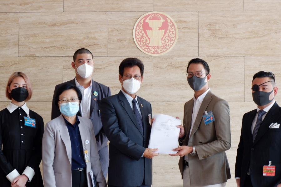 นพ.สุกิจ อัถโถปกรณ์ ที่ปรึกษาประธานสภาผู้แทนราษฎร และน.ส.ผ่องศรี ธาราภูมิ ผู้เชี่ยวชาญประจำตัวสมาชิกสภาผู้แทนราษฎร รับยื่นหนังสือจากนายอรรถพล ไข่ทอง และคณะ เรื่อง ขอริเริ่มเสนอร่าง พ.ร.บ.แก้ไขเพิ่มเติมประมวลกฎหมายอาญา (ฉบับที่ ..) พ.ศ.