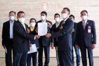 นายสุรทิน พิจารณ์ ส.ส. พรรคประชาธิปไตยใหม่ รับยื่นหนังสือจาก นายสว่าง วงค์กระโซ่ ประธานศูนย์ผู้ร่วมพัฒนาชาติไทย (ผรท.) เรื่องจะร่วมมือกับรัฐบาลและพี่น้องประชาชนคนไทยทุกคน จงรักภักดีต่อสถาบันพระมหากษัตริย์จนชีวิตจะหาไม่
