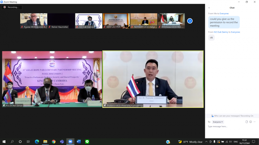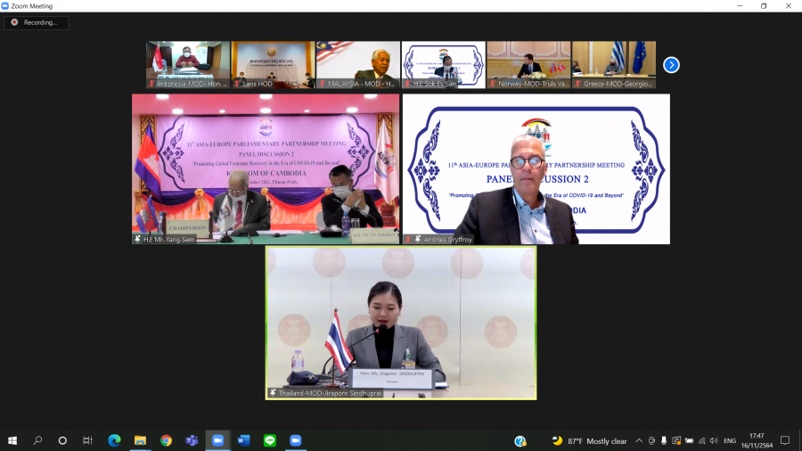 1) การประชุมเต็มคณะ ช่วงที่ 1 เวลา 15.0017.00 นาฬิกา ณ ห้องประชุมหมายเลข 406 ชั้น 4 โดยนายสุชาติ ตันเจริญ รองประธานสภาผู้แทนราษฎร คนที่หนึ่ง และหัวหน้าคณะผู้แทนรัฐสภาไทยได้เข้าร่วมการประชุมดังกล่าว โดยได้กล่าวถ้อยแถลงต่อที่ประชุม โดยสามารถสรุปสาระสำคัญ คือ การให้ความสำคัญกับรูปแบบการเติบโตทางเศรษฐกิจที่เป็นมิตรต่อสิ่งแวดล้อม อาทิ โมเดลเศรษฐกิจชีวภาพ เศรษฐกิจหมุนเวียน และเศรษฐกิจสีเขียว (Bio-Circular-Green Economy Model: BCG Model) ซึ่งไทยกำหนดให้เป็นวาระแห่งชาติ การรับรองการฉีดวัคซีนร่วมกันระหว่างสมาชิก ASEP ที่ช่วยสนับสนุนการเชื่อมโยงระหว่างประชาชนและฟื้นฟูเศรษฐกิจ รวมทั้งหลักประกันสุขภาพถ้วนหน้า ซึ่งเป็นอีกปัจจัยหนึ่งที่สำคัญสำหรับการฟื้นตัวหลังโควิด-19 และการตระหนักถึงความสำคัญของระบบการค้าพหุภาคีและสนับสนุนให้สมาชิกอำนวยความสะดวกทางการค้าและการลงทุนระดับภูมิภาค และกำจัดอุปสรรคทางการค้า ตลอดจนบทบาทของรัฐสภาในการปรับปรุงกฎหมายให้ทันสมัยและมีจุดมุ่งหมายเรื่องการกระจายวัคซีนและการผลิตวัคซีนอย่างทั่วถึงและเท่าเทียม การอำนวยความสะดวกทางการค้า และการจัดการห่วงโซ่อุปทานอย่างยั่งยืน เน้นย้ำความร่วมมือกันเพื่อสันติภาพ การพัฒนาที่ยั่งยืน และการสร้างโลกหลังโควิด-19 ที่ดีกว่าเดิม
