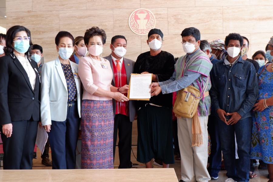 นางมุกดา พงษ์สมบัติ ประธานคณะ กมธ. กิจการเด็ก เยาวชน สตรี ผู้สูงอายุ ผู้พิการ กลุ่มชาติพันธุ์ และผู้มีความหลากหลายทางเพศ และคณะ รับยื่นหนังสือจาก นายสุริยันต์ ทองหนูเอียด ผู้ประสานงานกฎหมายที่ปรึกษาขบวนการประชาชนเพื่อสังคมที่เป็นธรรม พร้อมด้วยตัวแทนกลุ่มชาติพันธ์เพื่อชี้แจ้งเจตนารมณ์เนื้อหาสาระสำคัญของกฎหมายและความคืบหน้าการเข้าชื่อเสนอร่างพระราชบัญญัติคุ้มครองสิทธิและส่งเสริมวิถีชีวิตกลุ่มชาติพันธุ์และชนเผ่าพื้นเมือง พ.ศ. ....