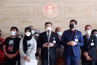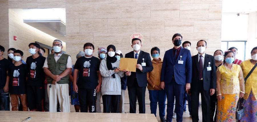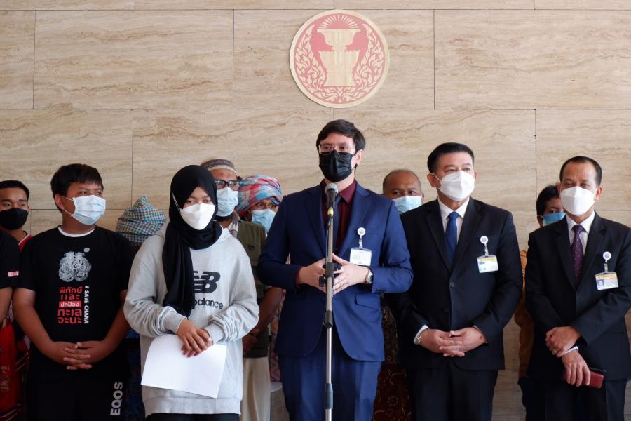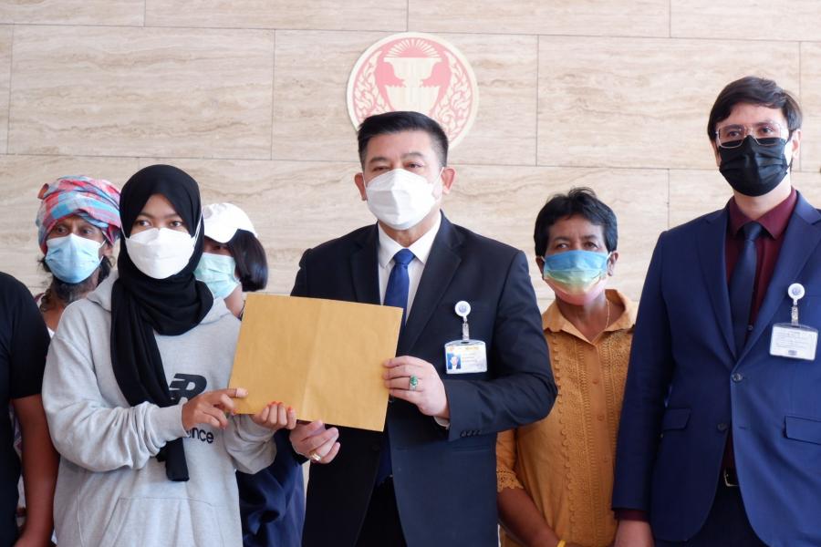นายสิระ เจนจาคะ ประธานคณะ กมธ.การกฎหมาย การยุติธรรม และสิทธิมนุษยชน พร้อมด้วยนายรังสิมันต์ โรม โฆษกคณะ กมธ. และนายอาดิลัน อาลีอิสเฮาะ กมธ. รับยื่นหนังสือจาก น.ส.ไครียะห์ ระหมันยะ ตัวแทนเครือข่ายจะนะรักษ์ถิ่น จ.สงขลา