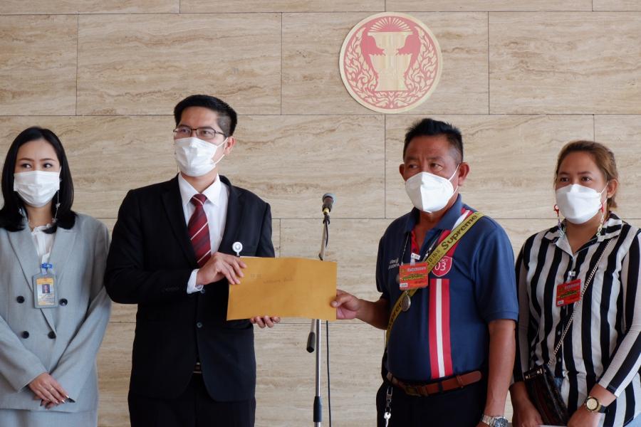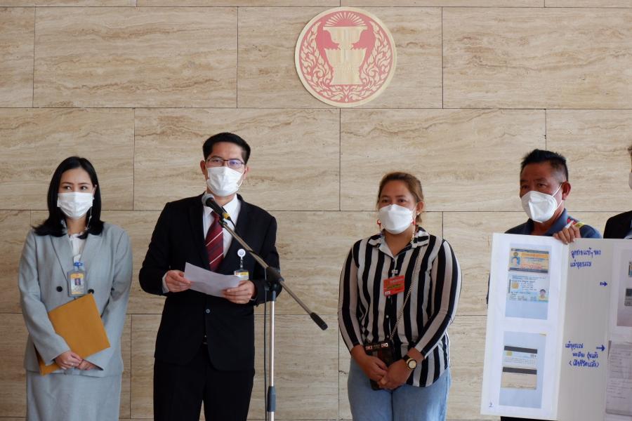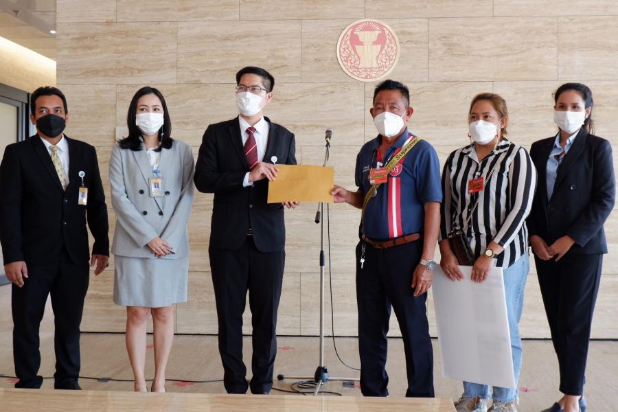 นายมงคลกิตติ์ สุขสินธารานนท์ ส.ส. พรรคไทยศรีวิไลย์ รับยื่นหนังสือจาก น.ส.มณฑกาญจน์ จันทร์สุก เพื่อขอความเป็นธรรมให้กับ นายประญวน อุ่นแก้ว บิดา ซึ่งถูกดึงสิทธิ์บัตรประจำตัวประชาชนกลับไปให้บุคคลอื่น