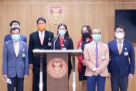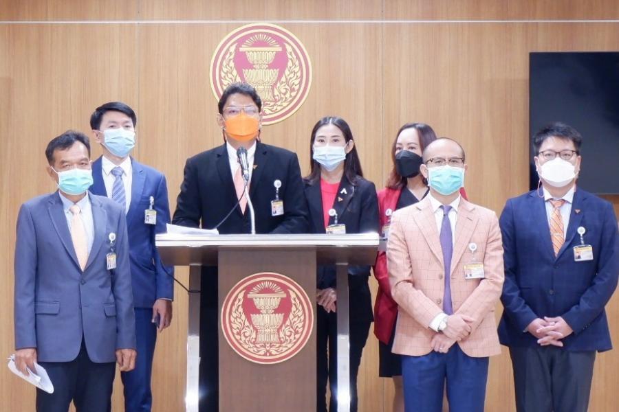 นายประเสริฐพงษ์ ศรนุวัตร น.ส.เบญจา แสงจันทร์ ส.ส.พรรคก้าวไกล และนายอภิชาติ ศิริสุนทร ประธานคณะ กมธ.การที่ดิน ทรัพยากรธรรมชาติและสิ่งแวดล้อม ร่วมกันแถลงข่าว