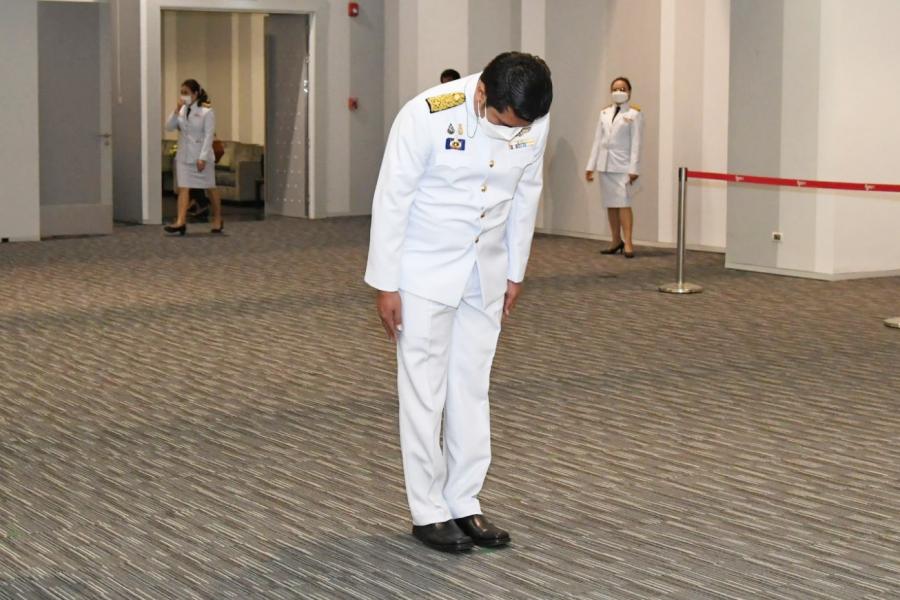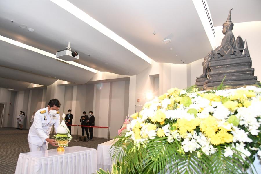 สมาชิกสภาผู้แทนราษฎรพรรคไทรักธรรม วางพานประดับพุ่มดอกไม้ถวายบังคมพระรูปต้นแบบพระบาทสมเด็จพระปกเกล้าเจ้าอยู่หัว ในนาม พรรคไทรักธรรม