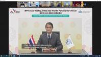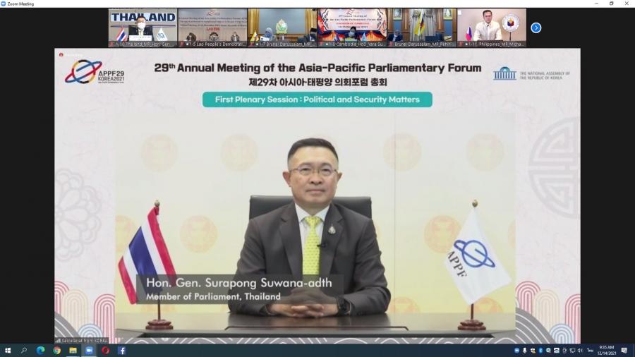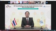 พลเอก สุรพงษ์ สุวรรณอัตถ์ สมาชิกวุฒิสภา ได้กล่าวถ้อยแถลงภายใต้หัวข้อ ความเป็นผู้นำของรัฐสภาเพื่อสันติภาพและความมั่นคงในภูมิภาคเอเชีย-แปซิฟิกและที่อื่น ๆ (Parliamentary leadership for peace and security in the Asia-Pacific and beyond) โดยได้กล่าวถึงบทบาทหน้าที่ของสมาชิกรัฐสภาที่จะรักษาความหวังและความฝันของประชาชนให้คงอยู่ โดยประเทศไทยตระหนักถึงความสำคัญของการรักษาสันติภาพ ตลอดจนการสร้างสภาพแวดล้อมที่สงบสุขและมั่นคงในภูมิภาคเอเชีย-แปซิฟิก รวมถึงหน้าที่ของรัฐสภาต่อการทบทวน ประเมิน และให้ข้อเสนอแนะในการนำนโยบายไปปฏิบัติ รวมถึงการใช้จ่ายงบประมาณ
