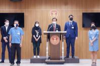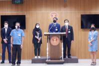 ประธานคณะ กมธ. วิสามัญพิจารณาร่างพระราชบัญญัติป้องกันและปราบปรามการทรมานและการกระทำให้บุคคลสูญหาย พ.ศ. .... พร้อมด้วย นายรังสิมันต์ โรม รองประธานคณะ กมธ. คนที่สี่ และคณะ แถลงผลการพิจารณาของคณะ กมธ.