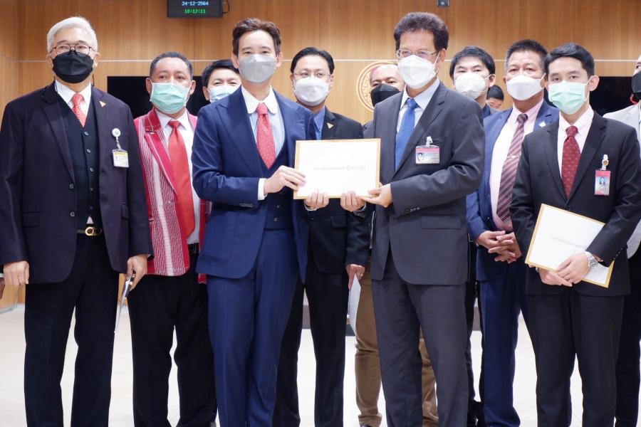 นพ.สุกิจ อัถโถปกรณ์ ที่ปรึกษาประธานสภาผู้แทนราษฎร พร้อมด้วยนายณัฐกานต์ ชูชอบ คณะทำงานทางการเมืองของประธานสภาผู้แทนราษฎร รับยื่นร่าง พ.ร.ป.ว่าด้วยการเลือกตั้งสมาชิกสภาผู้แทนราษฎร (ฉบับที่ ..) พ.ศ. .... และร่าง พ.ร.ป.ว่าด้วยพรรคการเมือง (ฉบับที่ ..) พ.ศ. .... จากนายพิธา ลิ้มเจริญรัตน์ หัวหน้าพรรคก้าวไกล และคณะ