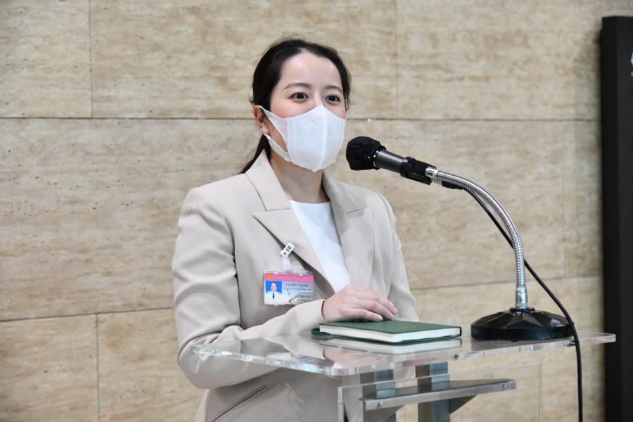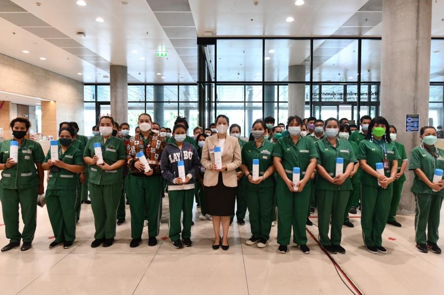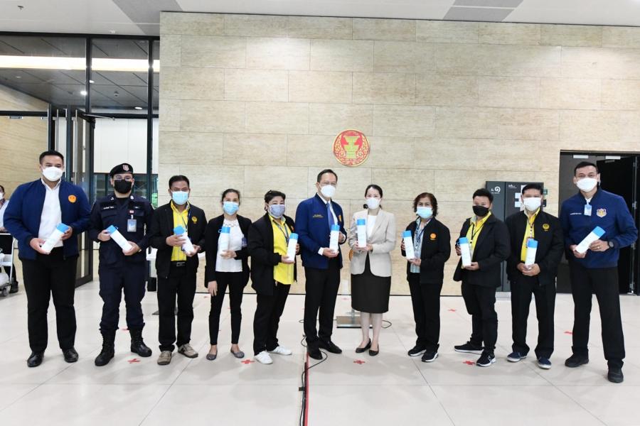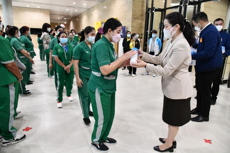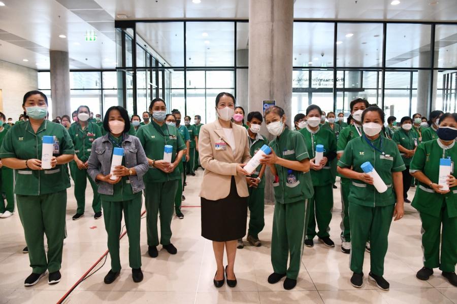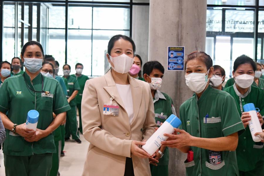 ประธานรัฐสภาและประธานสภาผู้แทนราษฎร มอบหมายให้ น.ส.ศิริภา อินทวิเชียร ผู้ช่วยเลขานุการ ประธานสภาผู้แทนราษฎร มอบกระบอกน้ำและอวยพรเนื่องในโอกาสวันขึ้นปีใหม่ พ.ศ. 2565 แก่พนักงานทำความสะอาดอาคารรัฐสภา