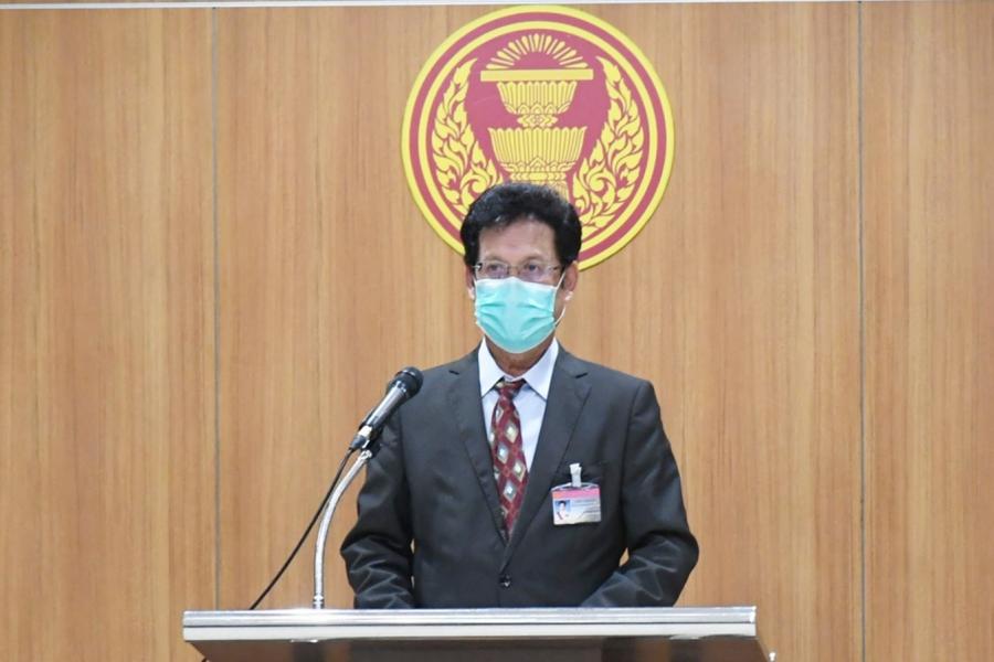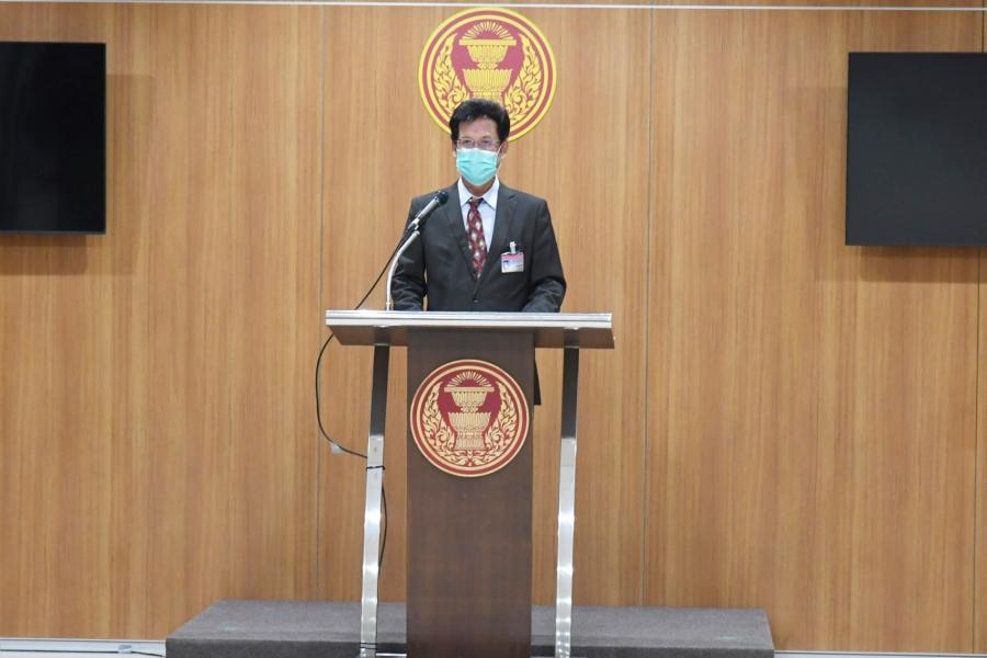 นพ.สุกิจ อัถโถปกรณ์ ที่ปรึกษาประธานสภาผู้แทนราษฎร แถลงข่าวเกี่ยวกับสถานการณ์โรคติดเชื้อไวรัสโคโรนา 2019 (โควิด-19) ภายในสภาผู้แทนราษฎร