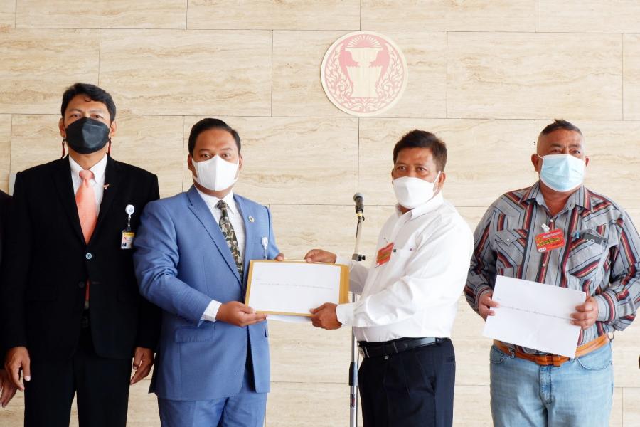 ประธานคณะ กมธ.การพัฒนาการเมือง การสื่อสารมวลชน และการมีส่วนร่วมของประชาชน และคณะ รับยื่นหนังสือจาก นายชัชวินทร์ จันทร์บัณดิษฐ์ ตัวแทนประชาชนกลุ่มรักษ์บ้านเกิดตำบลเกาะแต้ว จ.สงขลา และคณะ