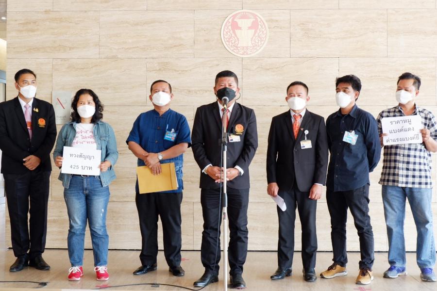 วันพฤหัสบดีที่ 20 มกราคม 2565 เวลา 11.20 นาฬิกา ณ จุดรับยื่นหนังสือ ชั้น 1 (โซนกลาง) อาคารรัฐสภา นายสุเทพ อู่อ้น ประธานคณะ กมธ.การแรงงาน พร้อมด้วยนายทวีศักดิ์ ทักษิณ โฆษกคณะ กมธ. รับยื่นหนังสือจากนายอมรฤทธิ์ แสงยะรักษ์ เลขาธิการสมัชชาแรงงานแห่งชาติ เพื่อขอให้ปรับขึ้นค่าแรงงานขั้นต่ำทั้งประเทศ เนื่องจากสถานการณ์ปัจจุบันมีการปรับขึ้นราคาสินค้าไม่ว่าจะเป็นอาหาร น้ำมัน ก๊าซหุงต้ม และอื่น ๆ อย่างต่อเนื่อง ส่งผลให้ประชาชนได้รับความเดือดร้อน โดยเฉพาะกลุ่มผู้ใช้แรงงาน ที่ต้องแบกรับค่าครองชีพที่สูงขึ้น แต่ได้รับค่าแรงขั้นต่ำโดยเฉลี่ยวันละ 320 บาท อีกทั้งไม่มีการปรับขึ้นมาเป็นเวลาหลายปี ทั้งที่รัฐบาลเคยใช้เป็นนโยบายไว้เมื่อปี 2562 ว่าจะต้องปรับค่าแรงขั้นต่ำเป็น 425 บาท ดังนั้น ทางสมัชชาแรงงานแห่งชาติ จึงได้ยื่นหนังสือนำเสนอข้อเรียกร้องเพื่อสร้างมาตรฐานค่าจ้างให้ประชาชนชนชั้นแรงงานเท่ากัน โดยเสนอให้รัฐมีนโยบายควบคุมราคาสินค้าอุปโภค บริโภคที่จำเป็นต่อชีวิตประชาชนทุกคน และเสนอให้รัฐปรับขึ้นค่าจ้างขั้นต่ำ เพื่อเป็นมาตรฐานเดียวกันให้กับแรงงานทุกคนเท่ากันทั้งประเทศ เนื่องจากราคาสินค้าอุปโภค บริโภคมีการปรับขึ้นเท่ากันทั้งประเทศ จึงมีความจำเป็นในการปรับขึ้นค่าจ้างขั้นต่ำให้เท่ากันทั่วประเทศ เพื่อยกระดับคุณภาพชีวิตของประชาชน และลดปัญหาความเหลื่อมล้ำในสังคม