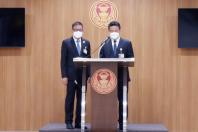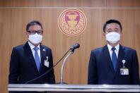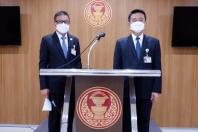 นายบัญญัติ เจตนจันทร์ พร้อมด้วยนายธารา ปิตุเตชะ สมาชิกสภาผู้แทนราษฎร พรรคประชาธิปัตย์ แถลงข่าวกรณีท่อน้ำมันดิบใต้ทะเลในนิคมมาบตาพุดรั่วไหล 400,000 ลิตร