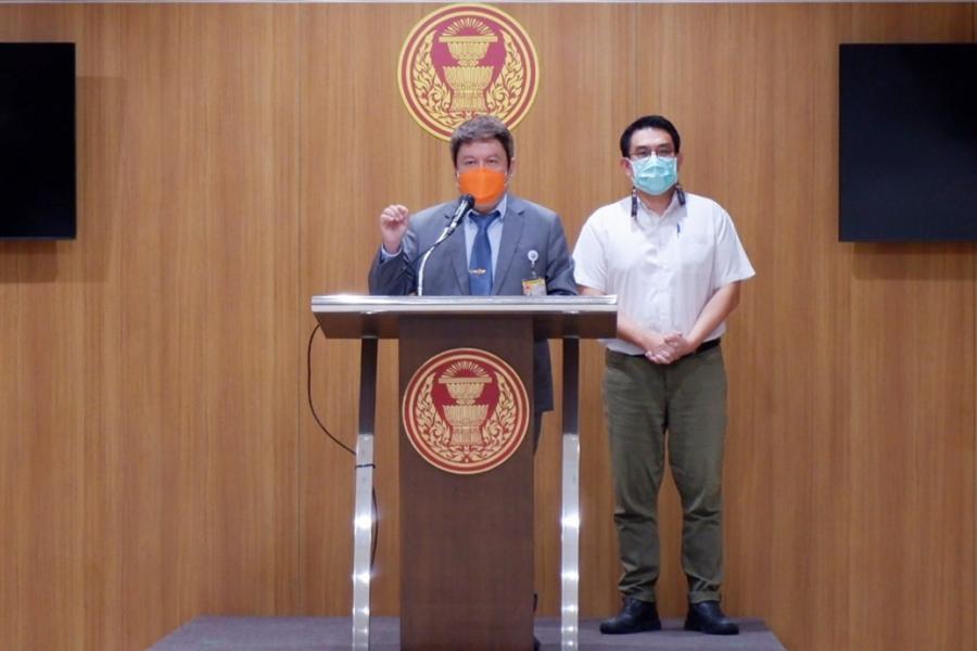 นายสุรเชษฐ์ ประวีณวงศ์วุฒิ ส.ส.พรรคก้าวไกล พร้อมด้วย นายวิโรจน์ ลักขณาอดิศร อดีต ส.ส.พรรคก้าวไกล แถลงข่าว