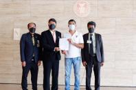 รองประธานคณะ กมธ.วิสามัญพิจารณาศึกษาการบริหารจัดการปาล์มน้ำมันอย่างเป็นระบบ คนที่สาม พร้อมด้วย โฆษกคณะ กมธ. รับยื่นหนังสือจาก นายเกรียงไกร นาคสุวรรณ ตัวแทนสมาคมปาล์มน้ำมันเพื่อการพัฒนาอย่างยั่งยืน