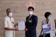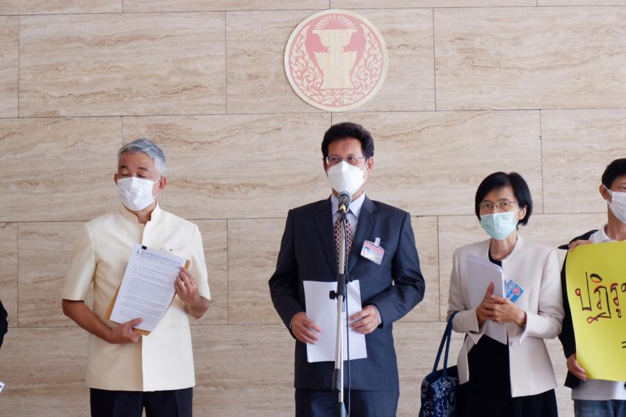 นพ.สุกิจ อัถโถปกรณ์ ที่ปรึกษาประธานสภาผู้แทนราษฎร รับยื่นหนังสือจาก นายนิกร วีสเพ็ญ ประธานกรรมการสมาคมสิทธิเสรีภาพของประชาชน (สสส.) และคณะ