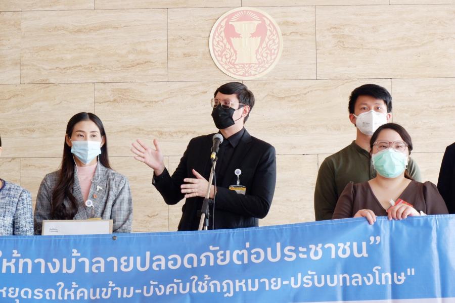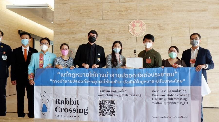 วันพฤหัสบดีที่ 10 กุมภาพันธ์ 2565 เวลา 13.00 นาฬิากา ณ จุดรับยื่นหนังสือ ชั้น 1 (โซนกลาง) อาคารรัฐสภา นายรังสิมันต์ โรม ส.ส. พรรคก้าวไกล และคณะ รับยื่นหนังสือจาก นพ.สิวดล พินิตความดี ตัวแทนกลุ่ม Rabbit Crossing/ทางกระต่าย และคณะ เพื่อขอให้พรรคก้าวไกลช่วยผลักดันการแก้กฎหมายให้ทางม้าลายปลอดภัยต่อประชาชน เนื่องจากปัจจุบันการตายและการบาดเจ็บจากอุบัติเหตุบนทางม้าลายมีมากกว่า 500 รายต่อปี และอัตราการเสียชีวิตสูงถึงร้อยละ 55 ถือเป็นปัญหาทางการแพทย์และสาธารณสุขที่สำคัญยิ่ง แต่ที่ผ่านมาปัญหานี้ยังไม่ได้รับการแก้ไขอย่างเป็นรูปธรรม จนเกิดเหตุการณ์อันน่าเศร้ากับหลาย ๆ ครอบครัว รวมทั้งเหตุการณ์ล่าสุดที่เกิดขึ้นกับ พญ.วราลัคน์ สุภวัตร จริยากุล หรือหมอกระต่าย ที่เสียชีวิตจากการถูกรถจักรยานยนต์ชนในขณะข้ามทางม้าลาย ดังนั้น ทางกลุ่มฯ จึงขอให้พรรคก้าวไกลผลักดันให้มีการปรับแก้กฎหมายเกี่ยวกับทางข้ามโดยเฉพาะ และกำหนดบทลงโทษที่ชัดเจนสำหรับผู้ที่กระทำผิดกฎหมาย รวมถึงผลักดันให้มีการลงโทษอย่างจริงจัง อันจะทำให้เกิดความยำเกรงและไม่กล้าฝ่าฝืนกฎหมาย ซึ่งเป็นหนึ่งในปัจจัยสำคัญที่จะทำให้ทางม้าลายปลอดภัยต่อประชาชน โดยทางกลุ่มฯ มีข้อเสนอ 5 ข้อ เพื่อการสร้างทางม้าลายที่ปลอดภัยแก่ประชาชนทุกคน ดังนี้