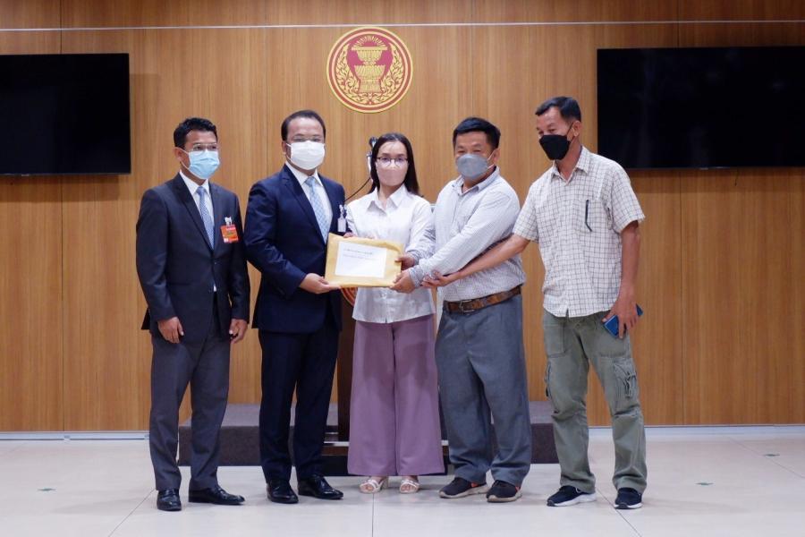 นายราเมศ รัตนะเชวง เลขานุการประธานรัฐสภา รับยื่นหนังสือ จาก น.ส.ปุณญาดา แววแก้ว ตัวแทนชาวบ้านตำบลตาอ็อง อำเภอเมืองสุรินทร์ จังหวัดสุรินทร์ และคณะ เรื่อง ขอให้กรมชลประทานส่งมอบคืนพื้นที่ให้กรมธนารักษ์ เพื่อนำที่ดินออกให้ประชาชนเช่าเพื่ออยู่อาศัย