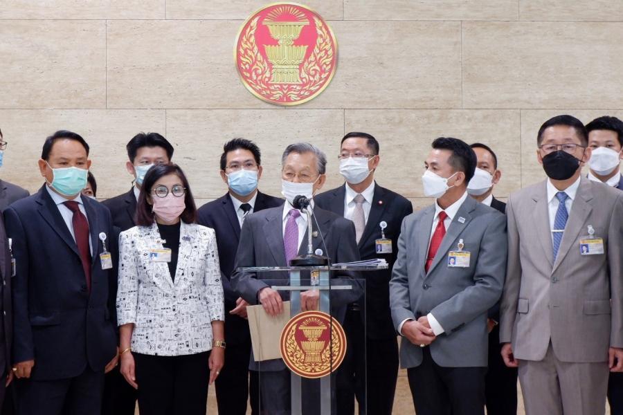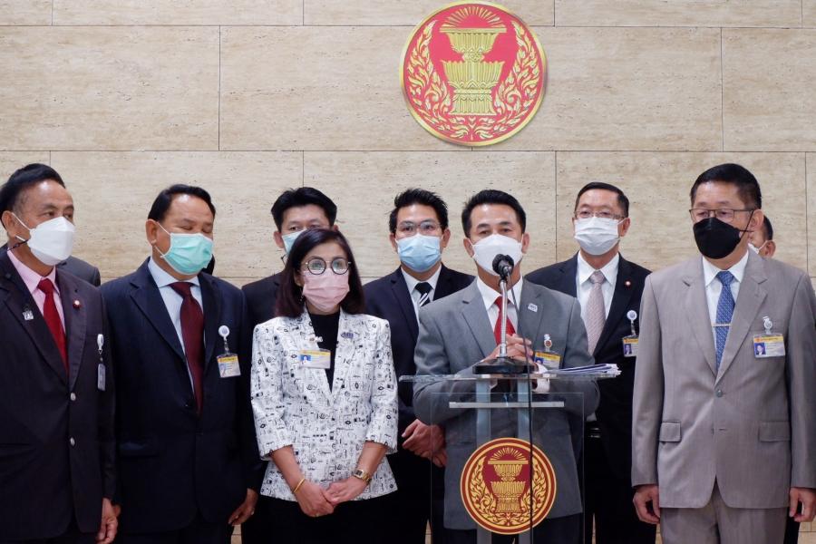 วันพุธที่ 23 กุมภาพันธ์ 2565 เวลา 11.00 นาฬิกา ณ จุดให้สัมภาษณ์ ชั้น 1 อาคารรัฐสภา นายชวน หลีกภัย ประธานรัฐสภา รับยื่นร่างรัฐธรรมนูญแห่งราชอาณาจักรไทย แก้ไขเพิ่มเติม (ฉบับที่..) พุทธศักราช .... จำนวน 3 ฉบับ จากนายชลน่าน ศรีแก้ว ผู้นำฝ่ายค้านในสภาผู้แทนราษฎร และสมาชิกสภาผู้แทนราษฎร พรรคเพื่อไทย พร้อมด้วยบันทึกหลักการและเหตุผล และบันทึกวิเคราะห์สรุปสาระสำคัญของ ร่างรัฐธรรมนูญแห่งราชอาณาจักรไทย แก้ไขเพิ่มเติม (ฉบับที่ ..) พุทธศักราช .... เพื่อโปรดนำเสนอที่ประชุมร่วมกันของรัฐสภาเพื่อพิจารณาตามรัฐธรรมนูญต่อไป
