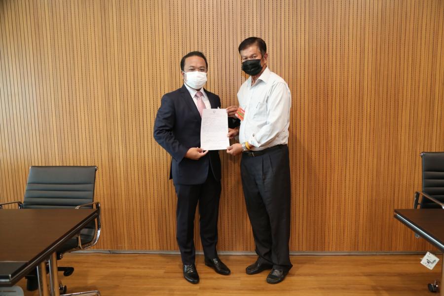 นายราเมศ รัตนะเชวง เลขานุการประธานรัฐสภา รับยื่นหนังสือจาก นายกันต์ นุรักษ์ ตัวแทนประชาชนในพื้นที่หมู่ที่ 8 ต.ไทรทอง อ.ชัยบุรี จ.สุราษฎร์ธานี และพื้นที่ใกล้เคียงที่ได้รับความเดือดร้อนจากปัญหาที่ดินทำกิน