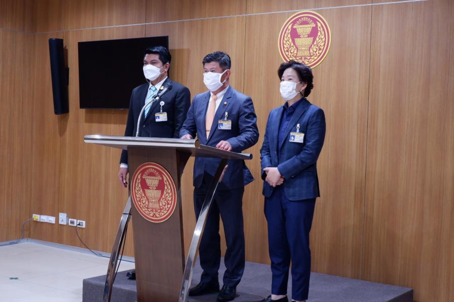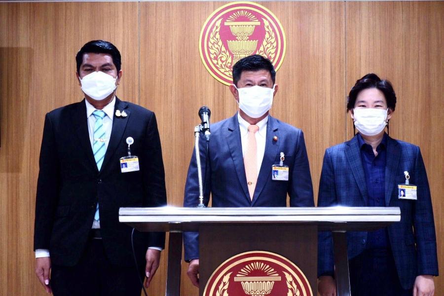 นายนพพล เหลืองทองนารา รองประธานคณะ กมธ. การสวัสดิการสังคม คนที่หนึ่ง และคณะ แถลงข่าวความคืบหน้าการนำเสนอรายงานของคณะ กมธ. ต่อที่ประชุมสภาผู้แทนราษฎร