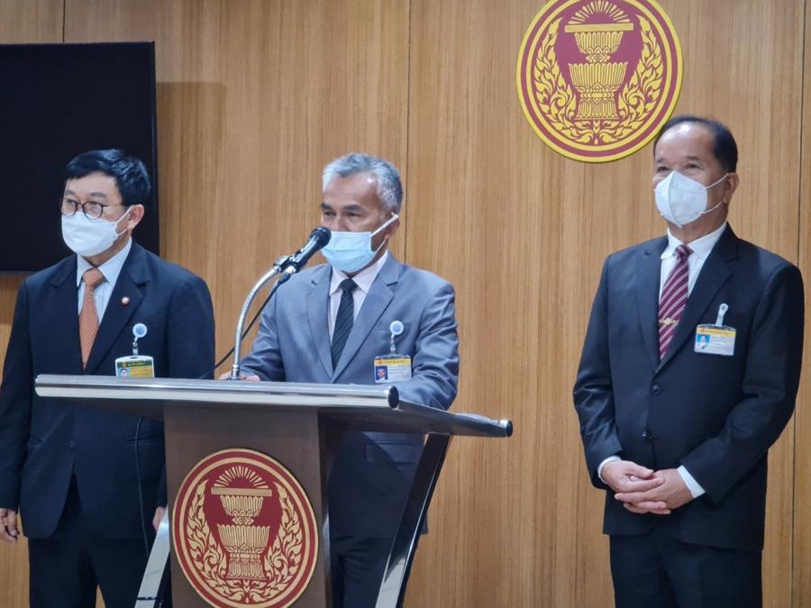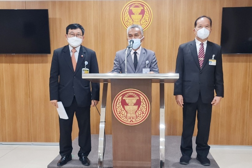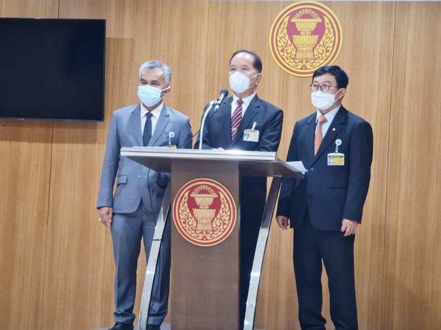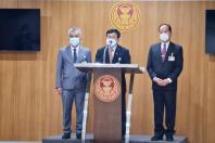 รศ.รงค์ บุญสวยขวัญ นายสมคิด เชื้อคง และนายดิเรกฤทธิ์ เจนครองธรรม โฆษกคณะ กมธ. วิสามัญพิจารณาร่างพระราชบัญญัติประกอบรัฐธรรมนูญ (พ.ร.ป.) ว่าด้วยการเลือกตั้งสมาชิกสภาผู้แทนราษฎร (ฉบับที่ ..) พ.ศ. .... ร่วมกันแถลงข่าวผลการประชุมคณะ กมธ.