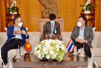 นายสุชาติ ตันเจริญ รองประธานสภาผู้แทนราษฎร คนที่หนึ่ง ได้กล่าวต้อนรับและทั้งสองฝ่ายได้หารือเรื่องความสัมพันธ์ระหว่างไทย เวียดนาม และปีนี้ครบรอบ 46 ปี ความสัมพันธ์ทางการทูตระหว่างไทย-เวียดนามอย่างเป็นทางการ ซึ่งที่ผ่านมาความสัมพันธ์ของสองประเทศความแน่นแฟ้นในทุกระดับ ดังจะเห็นจากมีการแลกเปลี่ยนการเดินทางเยือนในทุกระดับ แต่ได้หยุดลงเนื่องจากสถานการณ์โควิด 19 เอกอัครราชทูตฯ จึงขอเชิญรองประธานสภาผู้แทนราษฎร คนที่หนึ่ง เยือนเวียดนามเมื่อโอกาสอำนวย นอกจากนี้ยังมีชาวเวียดนามที่อาศัยในไทยโดยเฉพาะจังหวัดนครพนม และอุดรธานี เป็นต้น ทำให้คนไทยและเวียดนามมีความใกล้ชิดกันมาก ได้กล่าวและยังได้หารือแลกเปลี่ยนความคิดเห็นเกี่ยวกับสถานการณ์โควิดระหว่างสองประเทศ ซึ่งในปัจจุบันเวียดนามมีผู้ติดเชื้อกว่า 200,000 คนต่อวันอย่างไรก็ดี เมื่อวันที่ 15 มีนาคม เวียดนามเพิ่งประกาศเปิดประเทศเพื่อต้อนรับนักท่องเที่ยว ซึ่งถือว่าเป็นมาตรการกระตุ้นเศรษฐกิจที่สำคัญอย่างหนึ่งของเวียดนาม ทั้งนี้ ไทยก็ได้รับผลกระทบจากโควิด-19 ด้วยเช่นกัน ทั้งในเรื่องการท่องเที่ยว การลงทุน ตลอดจนธุรกิจด้านการบริการ ในด้านเศรษฐกิจ ไทยชื่นชมนโยบายด้านการส่งเสริมการลงทุนจากต่างชาติซึ่งประสบความสำเร็จเป็นอย่างดี ทำให้มีต่างชาติเข้ามาลงทุนในเวียดนามเป็นจำนวนมาก ที่สำคัญ ได้แก่ เกาหลีและญี่ปุ่น เป็นต้น นอกจากนี้ยังได้หารือถึงการเชื่อมโยงด้านคมนาคมระหว่างเวียดนาม-ลาว-ไทยซึ่งจะช่วยส่งเสริมด้านการค้าและการลงทุนระหว่าง 3 ประเทศ อีกทั้งด้านการศึกษาได้หารือเรื่องการสอนภาษาเวียดนามซึ่งปัจจุบันมหาวิทยาลัยวลัยลักษณ์มีการเปิดการสอนภาษาเวียดนามเพื่อการท่องเที่ยว และขณะนี้สิงคโปร์ได้เสนอให้มีการบรรจุภาษาเวียดนามในหลักสูตรการเรียนการสอนเป็นภาษาที่ 3 แล้ว