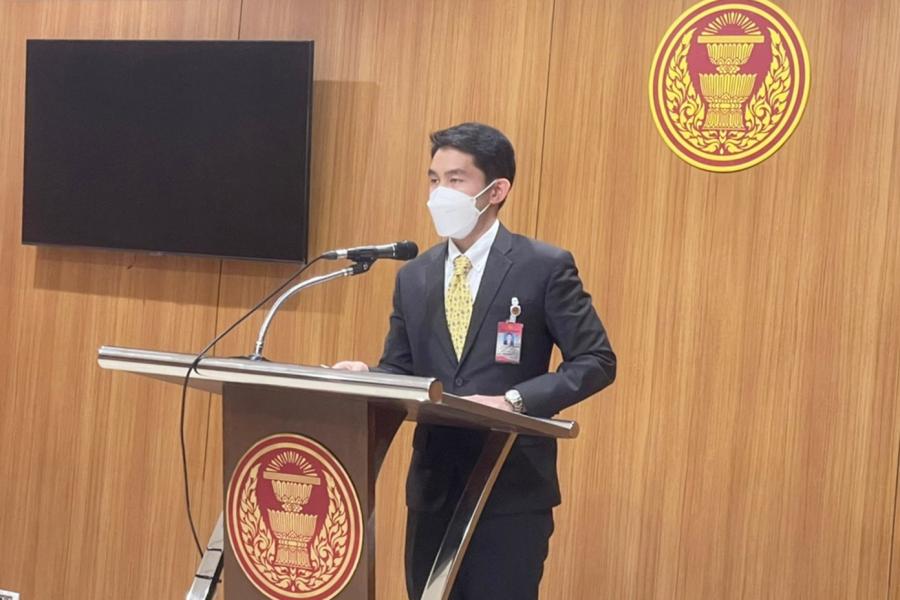 นายณัฐกานต์ ชูชนะ เลขานุการคณะทำงานทางการเมืองของประธานสภาผู้แทนราษฎร แถลงข่าวประเด็นจำนวนผู้ติดเชื้อไวรัสโวรัสโคโรนา 2019 (โควิด-19) ของสำนักงานเลขาธิการสภาผู้แทนราษฎร