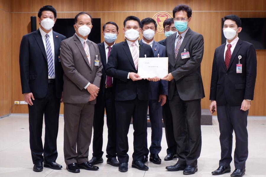 นพ.สุกิจ อัถโถปกรณ์ ที่ปรึกษาประธานสภาผู้แทนราษฎร พร้อมด้วย นายณัฐกานต์ ชูชนะ เลขานุการคณะทำงานทางการเมืองของประธานสภาผู้แทนราษฎร รับยื่นร่างพระราชบัญญัติลำไย พ.ศ. .... จากนายรังสรรค์ มณีรัตน์ นายสมคิด เชื้อคง นายนพคุณ รัฐผไท นายวิทยา ทรงคำ นายณัฐพงษ์ สุปริยศิลป์ และนายนพพล เหลืองทองนารา สมาชิกสภาผู้แทนราษฎร พรรคเพื่อไทย