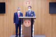 รศ.รงค์ บุญสวยขวัญ และนายอัครเดช วงษ์พิทักษ์โรจน์ โฆษก คณะ กมธ. วิสามัญพิจารณาร่าง พ.ร.ป. ว่าด้วยการเลือกตั้งสมาชิกสภาผู้แทนราษฎร (ฉบับที่ .. ) พ.ศ. .... แถลงผลการประชุมคณะ กมธ.