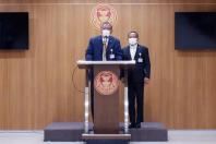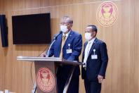 นายวีระกร คำประกอบ รองประธาน กมธ. วิสามัญพิจารณาปัญหาการแพร่ระบาดของโรคอหิวาต์แอฟริกาในสุกร และศึกษาแนวทางช่วยเหลือประชาชนจากปัญหาราคาสินค้าอุปโภคบริโภคปรับตัวสูงขึ้น คนที่หนึ่ง และนายกองตรี อาญาสิทธิ์ ศรีสุวรรณ ผู้ช่วยเลขานุการคณะ กมธ. แถลงข่าวกรณีราคาสุกรสูงขึ้น