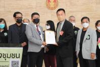 นายสุเทพ อู่อ้น ประธานคณะ กมธ.การแรงงาน รับยื่นหนังสือจากนายอภิชาติ อนันตชัยสิทธิ์ ประธานสมาพันธ์วิสาหกิจชุมชน ผู้ปลูกกัญชา กัญชง และพืชสมุนไพรเพื่อการแพทย์ และคณะ