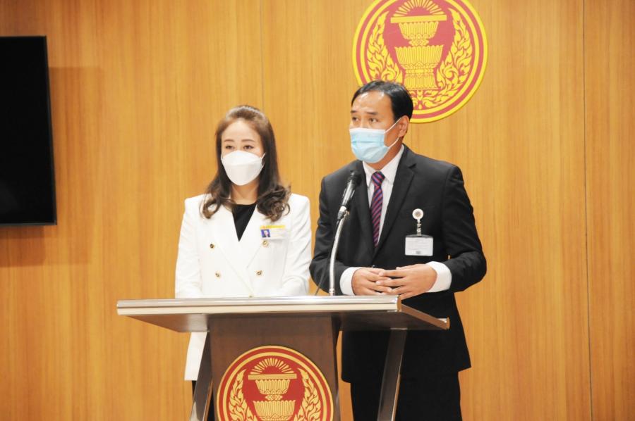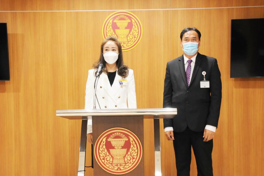 น.ส.นภาภรณ์ เพ็ชร์จินดา และนายมานะศักดิ์ จันทร์ประสงค์ โฆษกคณะกมธ.กิจการสภาผู้แทนราษฎร แถลงข่าวถึงประเด็นที่สื่อมวลชนนำเสนอข่าวเกี่ยวกับสโมสรรัฐสภา