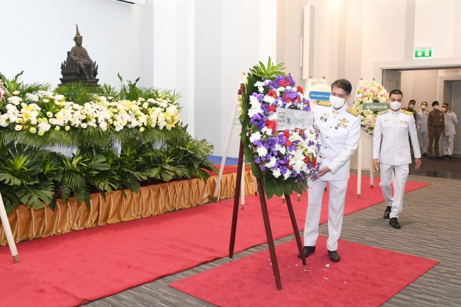 นายสุภดิช อากาศฤกษ์ หัวหน้าพรรคเศรษฐกิจใหม่ วางพวงมาลาถวายราชสักการะพระรูปต้นแบบพระบาทสมเด็จพระปกเกล้าเจ้าอยู่หัว ในนาม พรรคเศรษฐกิจใหม่