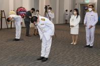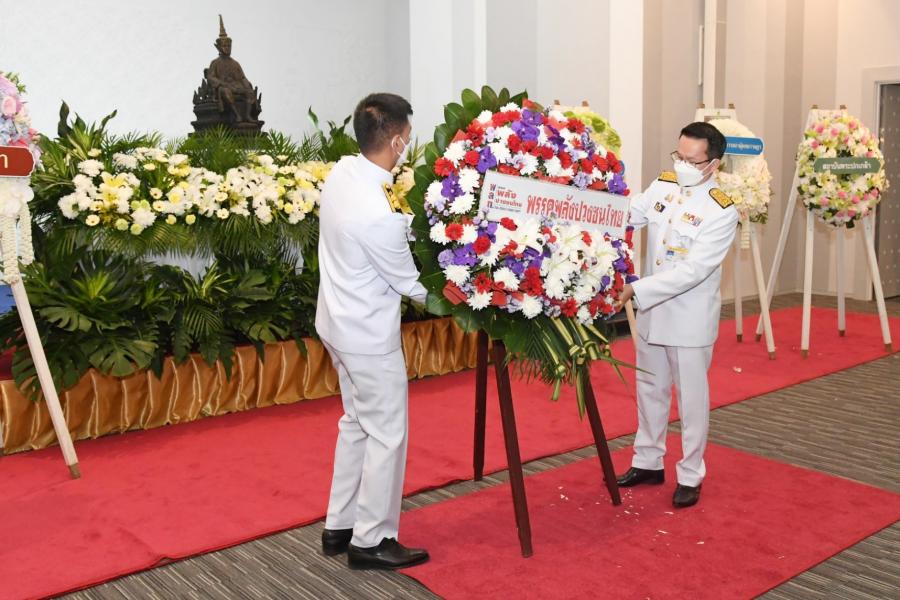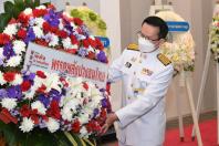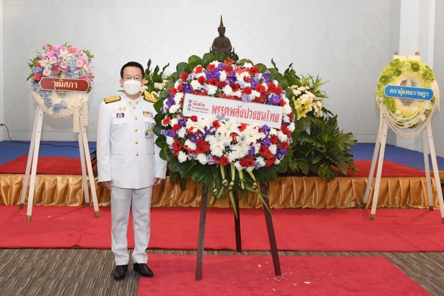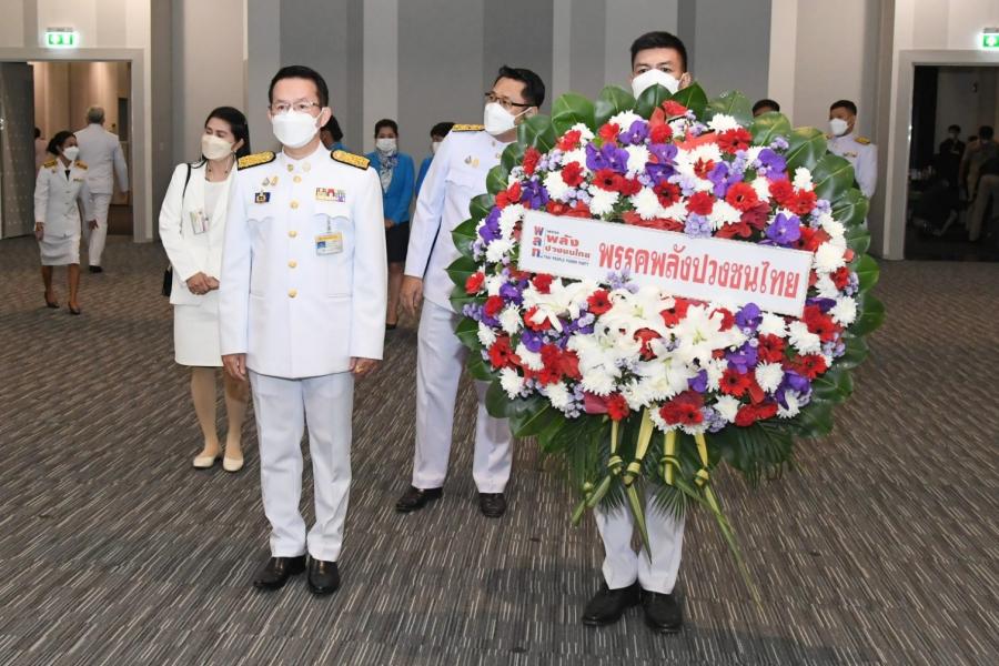นายนิคม บุญวิเศษ หัวหน้าพรรคพลังปวงชนไทย วางพวงมาลาถวายราชสักการะพระรูปต้นแบบพระบาทสมเด็จพระปกเกล้าเจ้าอยู่หัว ในนาม พรรคพลังปวงชนไทย