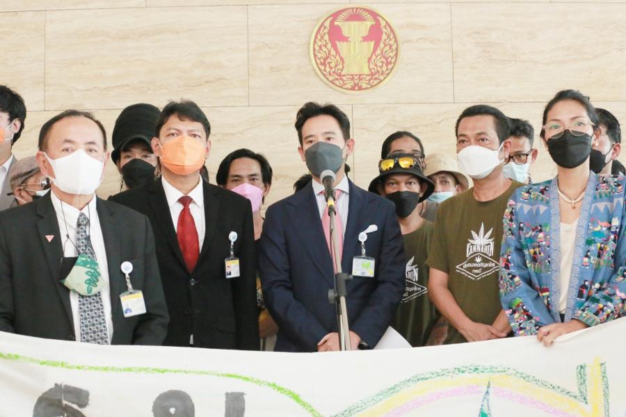 นายพิธา ลิ้มเจริญรัตน์ ส.ส.พรรคก้าวไกล และคณะ รับยื่นร่าง พ.ร.บ.กัญชา กัญชง ภาคประชาชน จากนายอัครเดช ฉากจินดา ผู้ประสานงานเครือข่ายเขียนอนาคตกัญชาไทย และคณะ