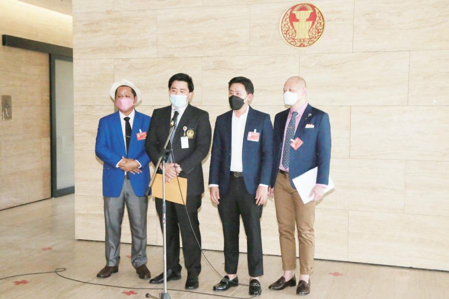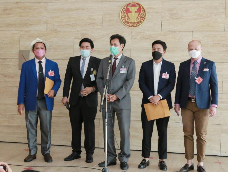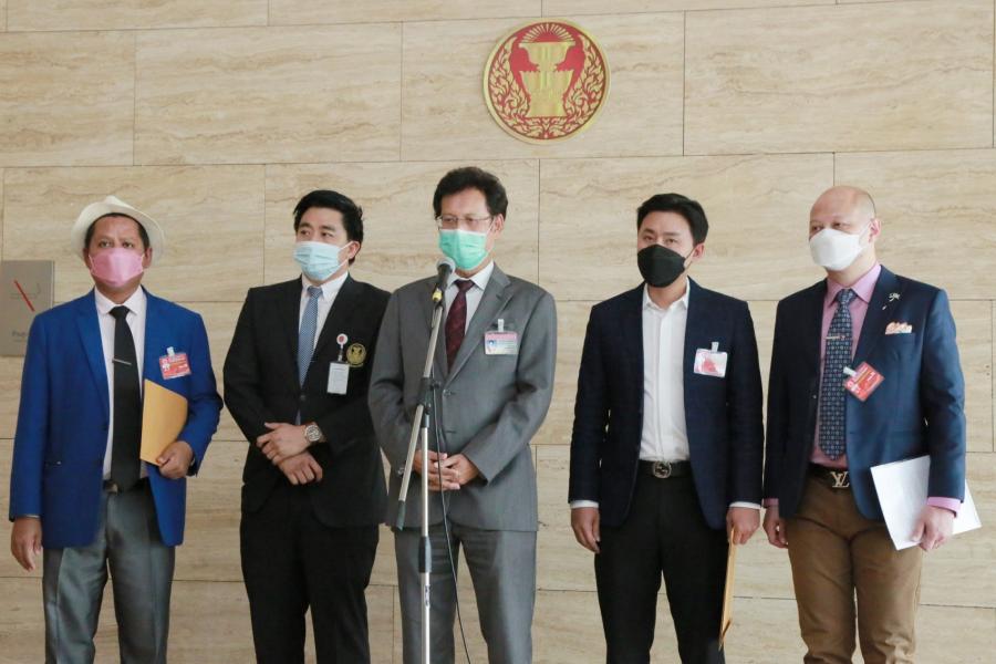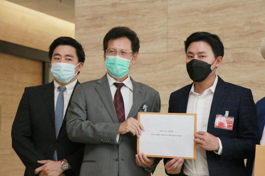 นพ.สุกิจ อัถโถปกรณ์ ที่ปรึกษาประธานสภาผู้แทนราษฎร พร้อมด้วย นายแทนคุณ จิตต์อิสระ เลขานุการคณะทำงานทางการเมืองของประธานสภาผู้แทนราษฎร รับยื่นหนังสือจาก นายษิทรา เบี้ยบังเกิด เลขาธิการมูลนิธิทีมงานทนายประชาชน เพื่อเยาวชนและสังคม และคณะ