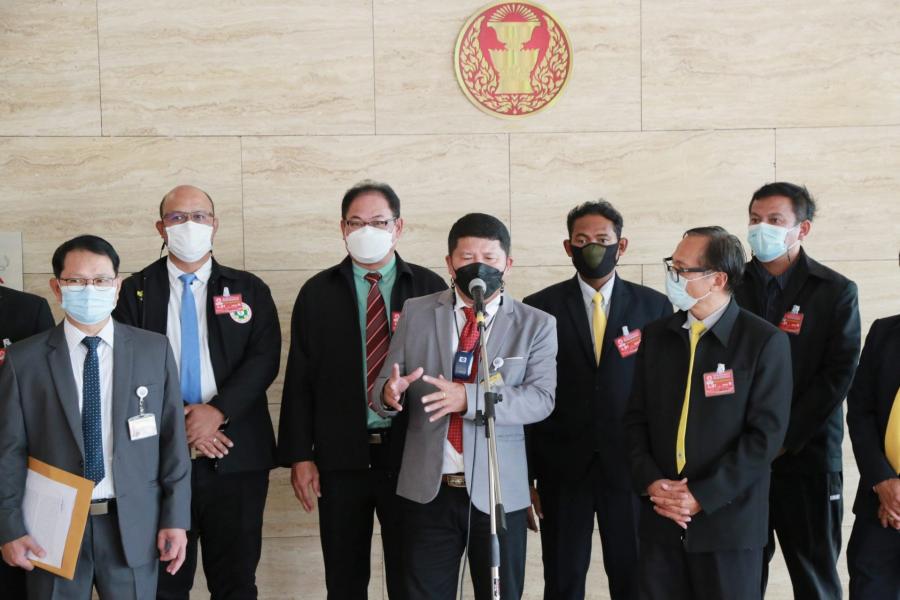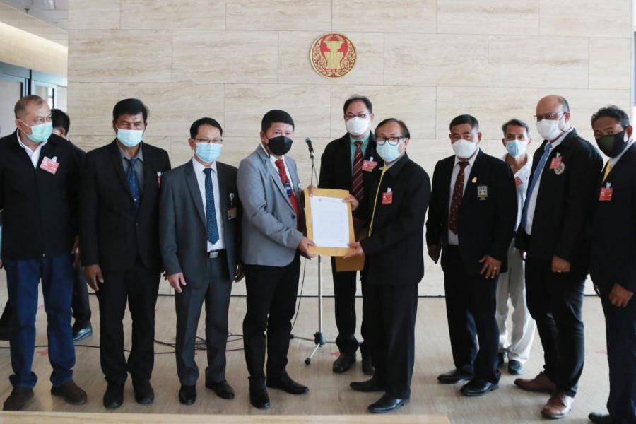 นายสุเทพ อู่อ้น ประธานคณะ กมธ.การแรงงาน รับยื่นหนังสือจากนายสุรศักดิ์ ซ่อนกลิ่น นายกสมาคมความปลอดภัยในการทำงานจ.ระยอง และคณะ