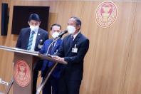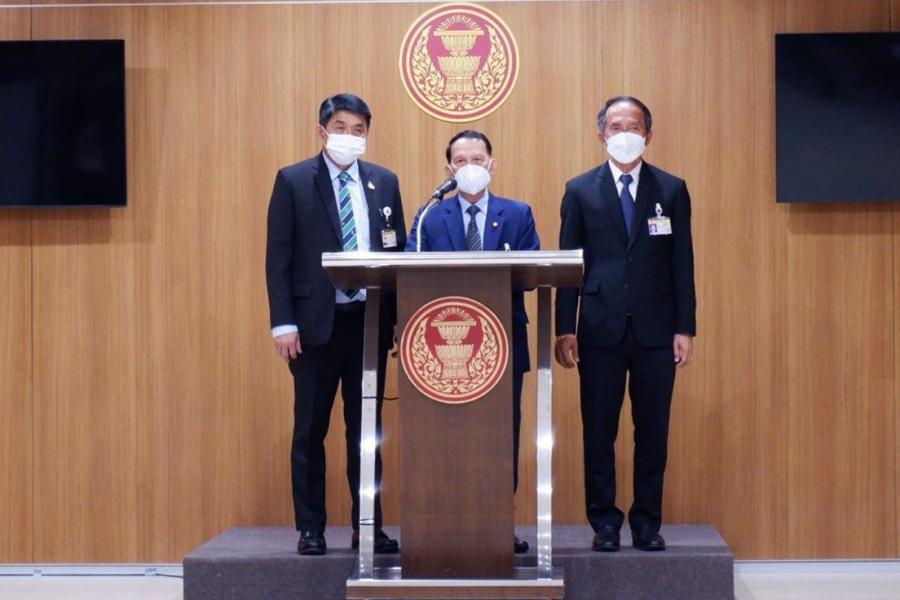 ศ.โกวิทย์ พวงงาม ส.ส.พรรคพลังท้องถิ่นไท นายสฤษฏ์พงษ์ เกี่ยวข้อง ส.ส.พรรคภูมิใจไทย และนายวัชรพล โตมรศักดิ์ ส.ส.พรรคชาติพัฒนา ร่วมกันแถลงข่าว